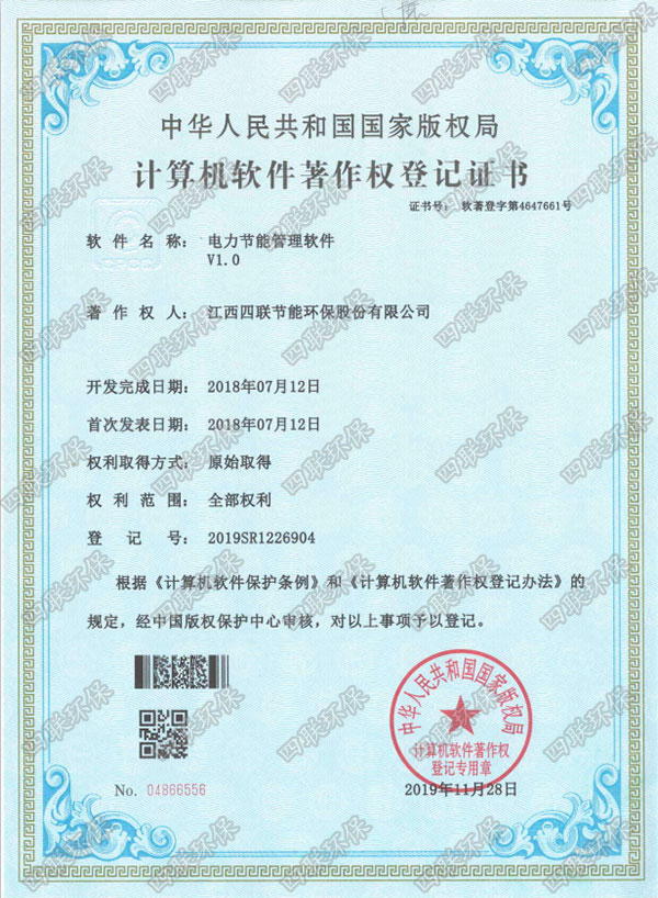 計算機軟件著(zhù)作權登記證書(shū)(電力節能管理軟件)