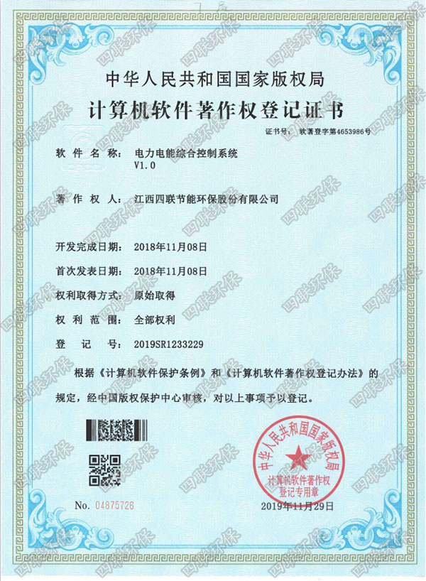 計算機軟件著(zhù)作權登記證書(shū)(電力電能綜合控制系統)