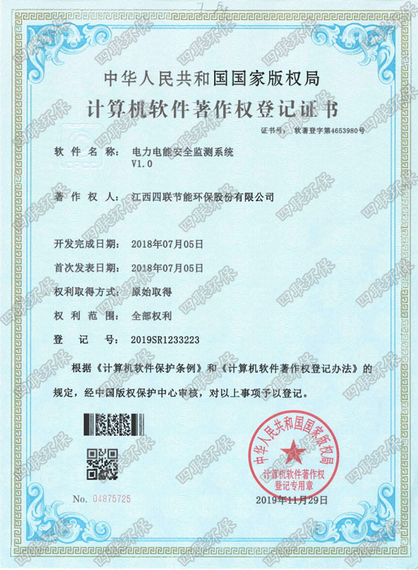 計算機軟件著(zhù)作權登記證書(shū)(電力電能安全監測系統)