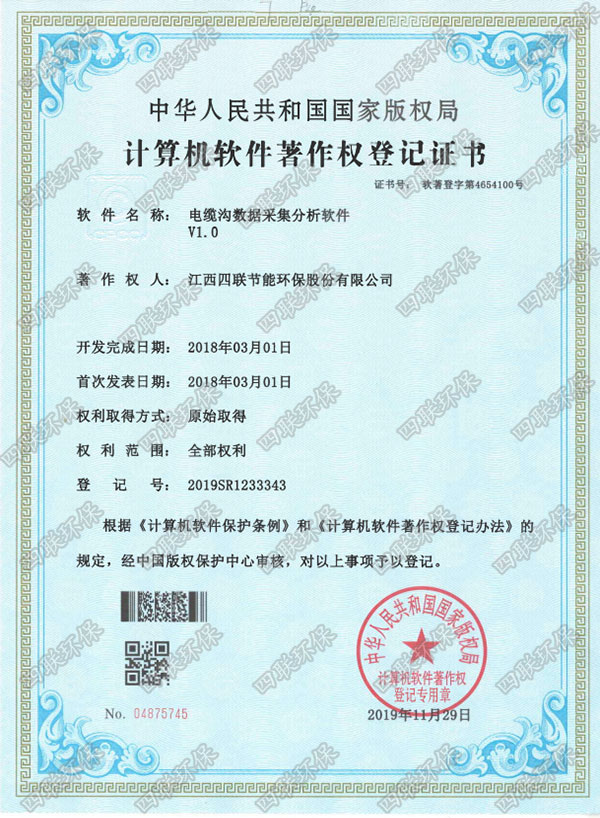 計算機軟件著(zhù)作權登記證書(shū)(電纜溝數據采集分析軟件)