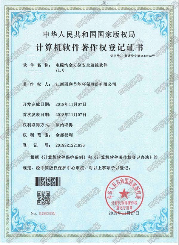 計算機軟件著(zhù)作權登記證書(shū)(電纜溝全方位安全監控軟件)
